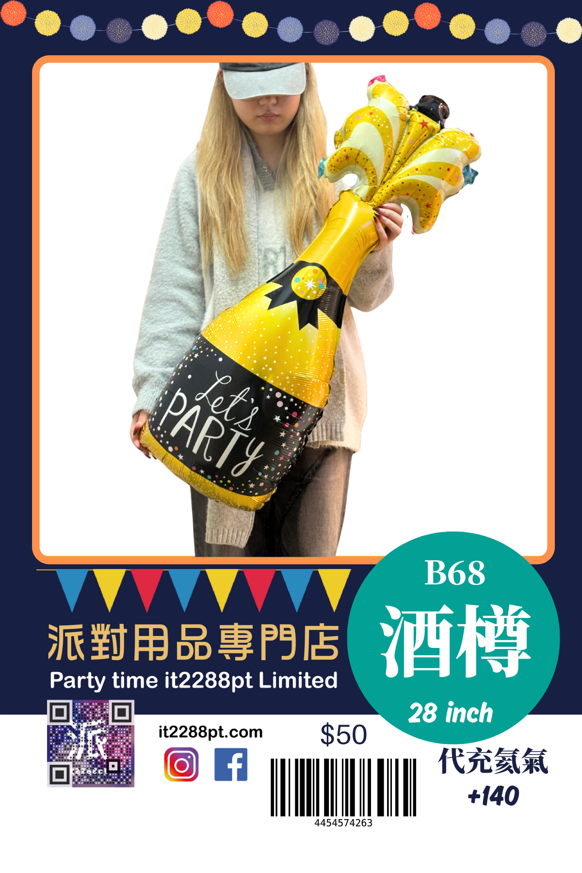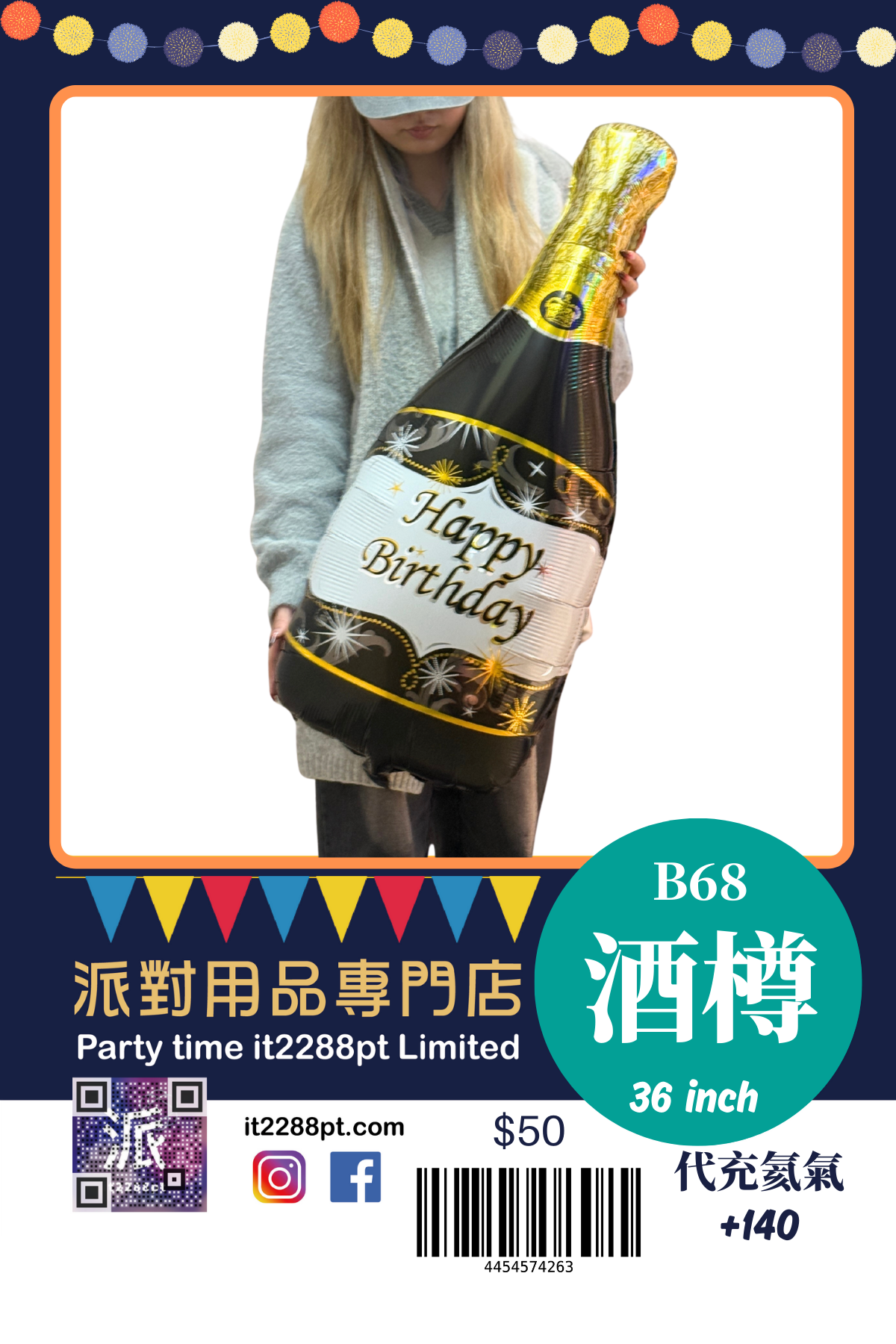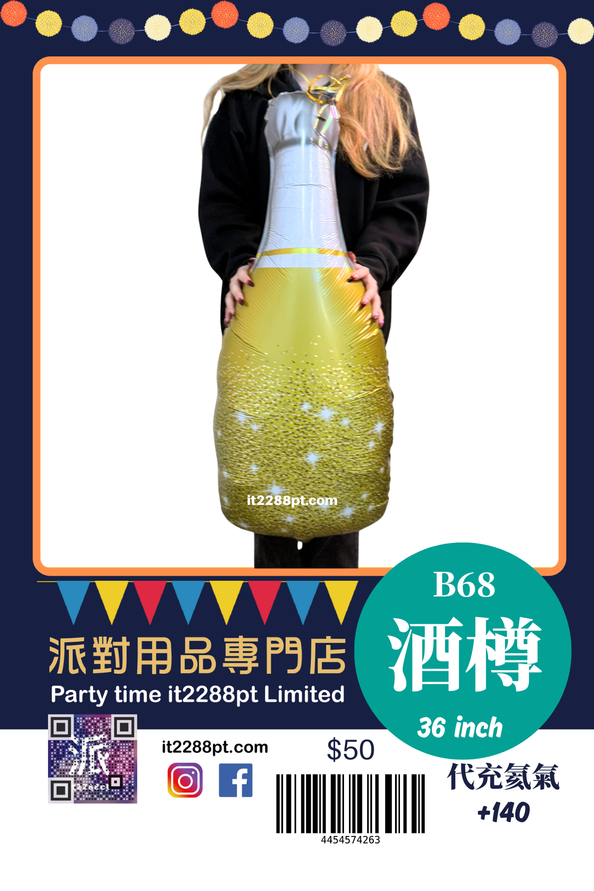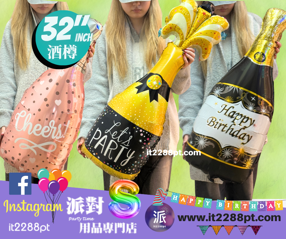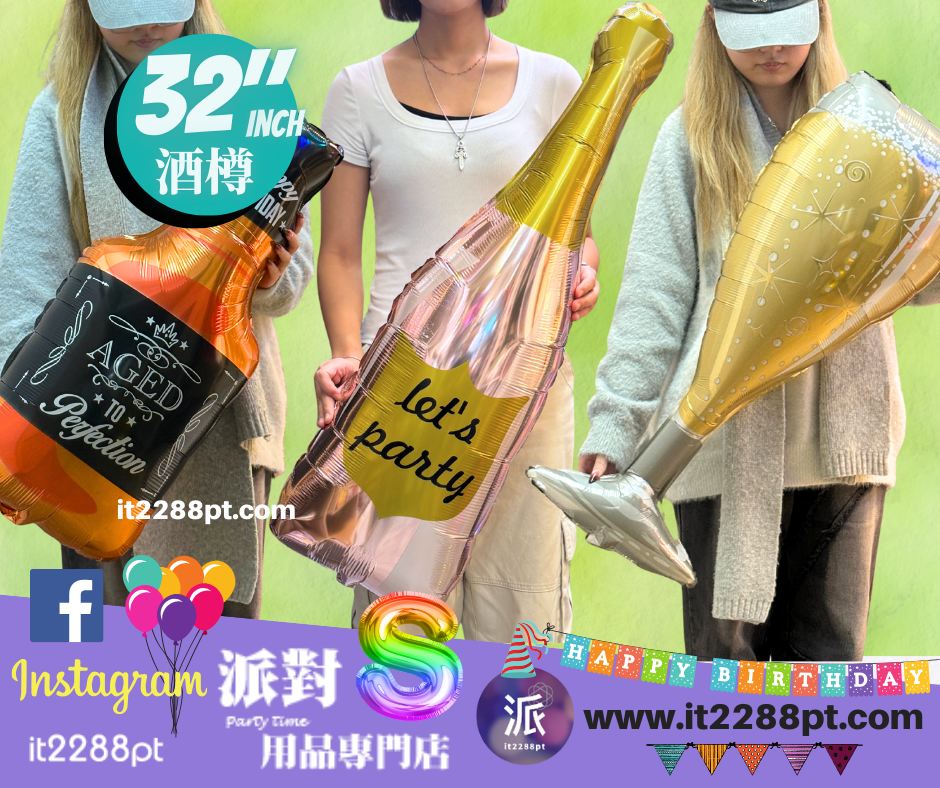 32 吋超吸睛香檳酒樽造型鋁膜氣球, 適合生日派對、求婚、周年慶祝、朋友聚會及打卡佈置。 ✔ 可充氦氣(會飄) ✔ 亦可充空氣(掛牆 / 地面佈置) ✔ 鋁膜物料,耐用不易爆 ✔ 拍照效果一流,派對氣氛即刻提升 📍 本店提供充氦氣服務 📦 香港門市自取 / 本地速遞 📲 歡迎 WhatsApp 查詢即日安排