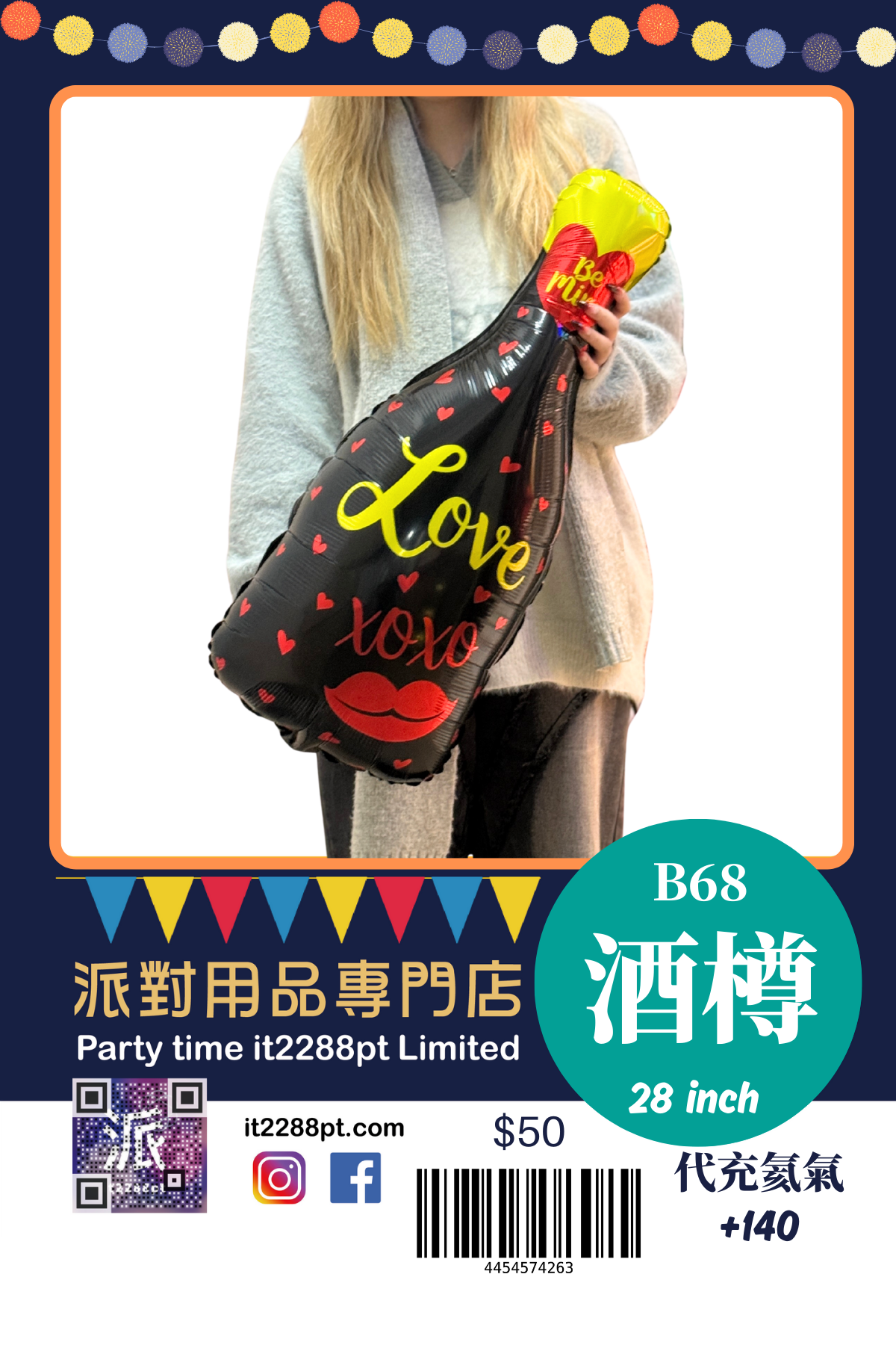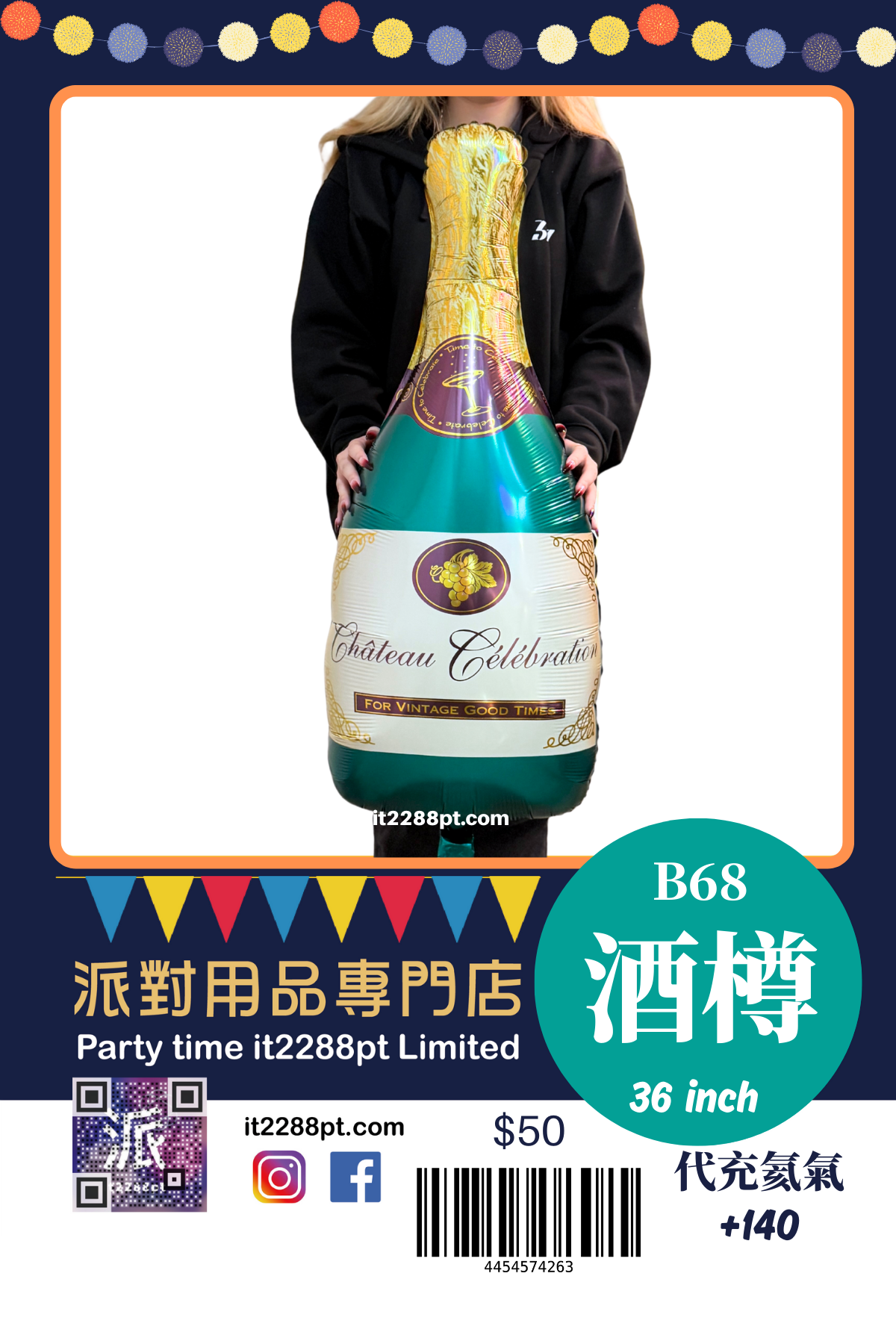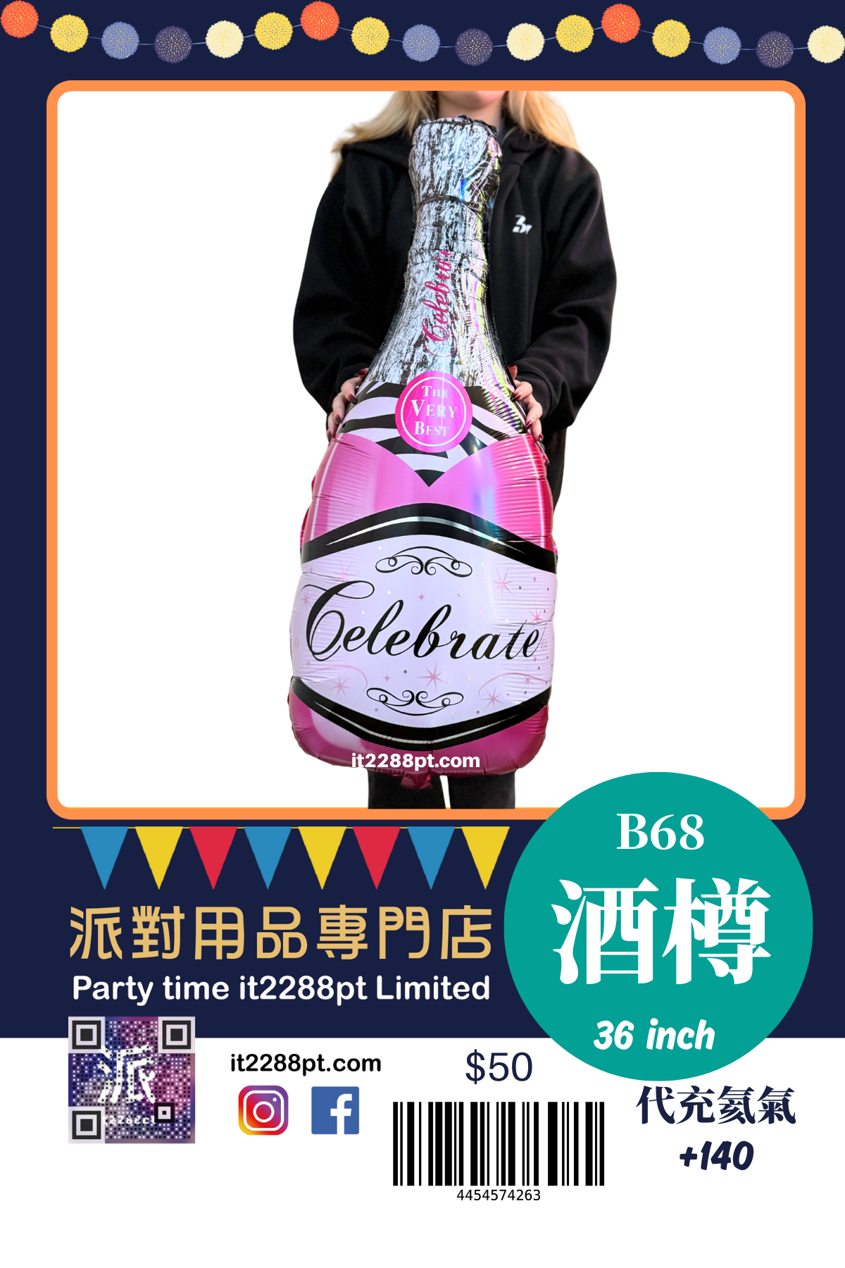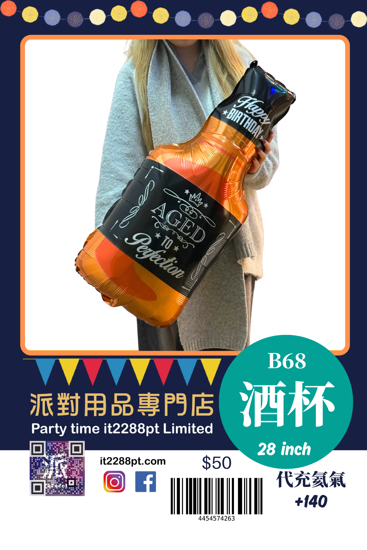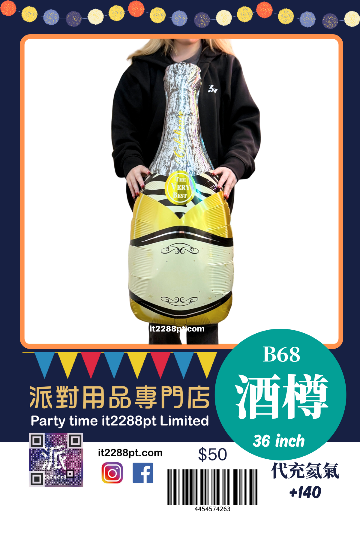 32 吋超吸睛香檳酒樽造型鋁膜氣球, 適合生日派對、求婚、周年慶祝、朋友聚會及打卡佈置。 ✔ 可充氦氣(會飄) ✔ 亦可充空氣(掛牆 / 地面佈置) ✔ 鋁膜物料,耐用不易爆 ✔ 拍照效果一流,派對氣氛即刻提升 📍 本店提供充氦氣服務 📦 香港門市自取 / 本地速遞 📲 歡迎 WhatsApp 查詢即日安排