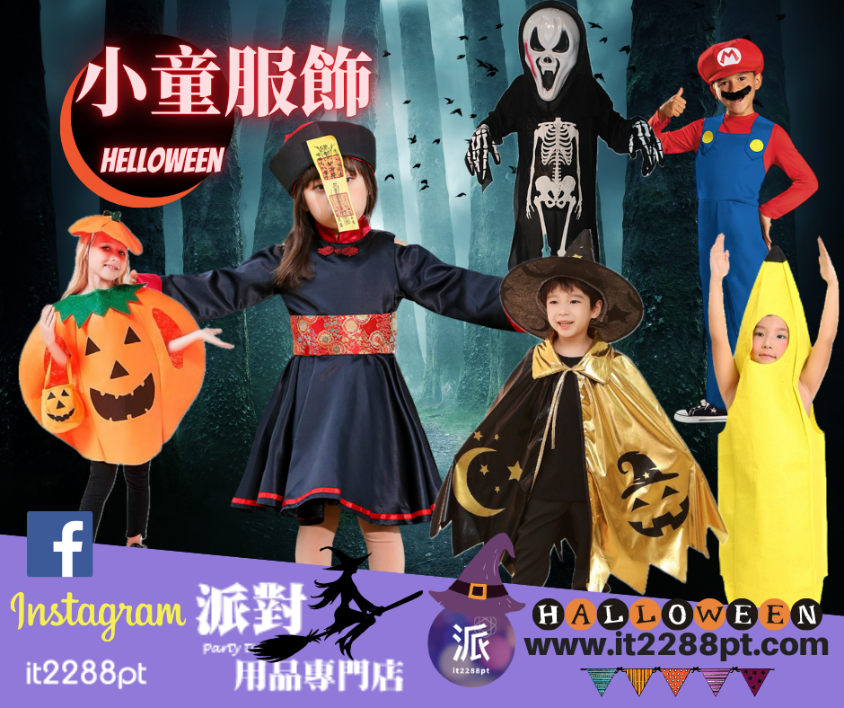 🎃【兒童萬聖節搞鬼服飾】👻 多款小朋友造型服裝,包括南瓜精靈、蜘蛛俠、吸血鬼、巫師、香蕉人等! 輕盈透氣布料,穿著舒適,適合學校派對、商場活動、親子影相打卡。 ✅ 香港現貨|旺角店/觀塘店即日取貨 ✅ 可配萬聖節頭飾、化妝用品、玩具道具 ✅ WhatsApp 98148204 查詢 🌐 網店:https://www.it2288pt.com