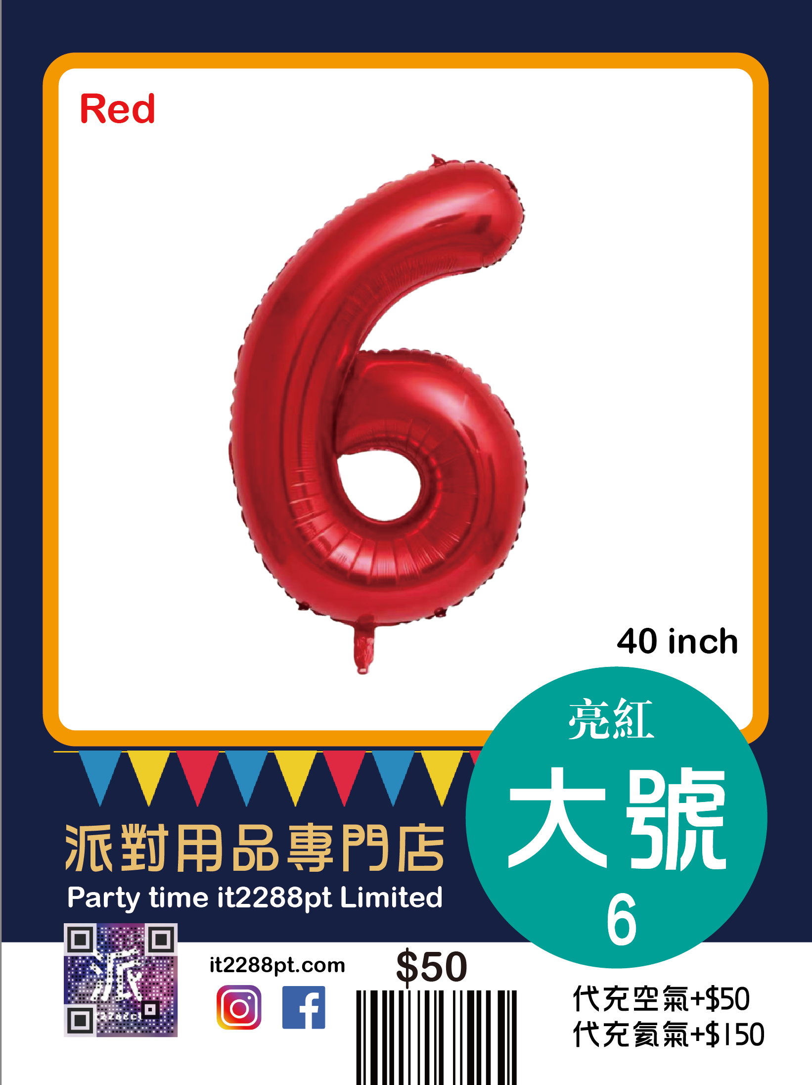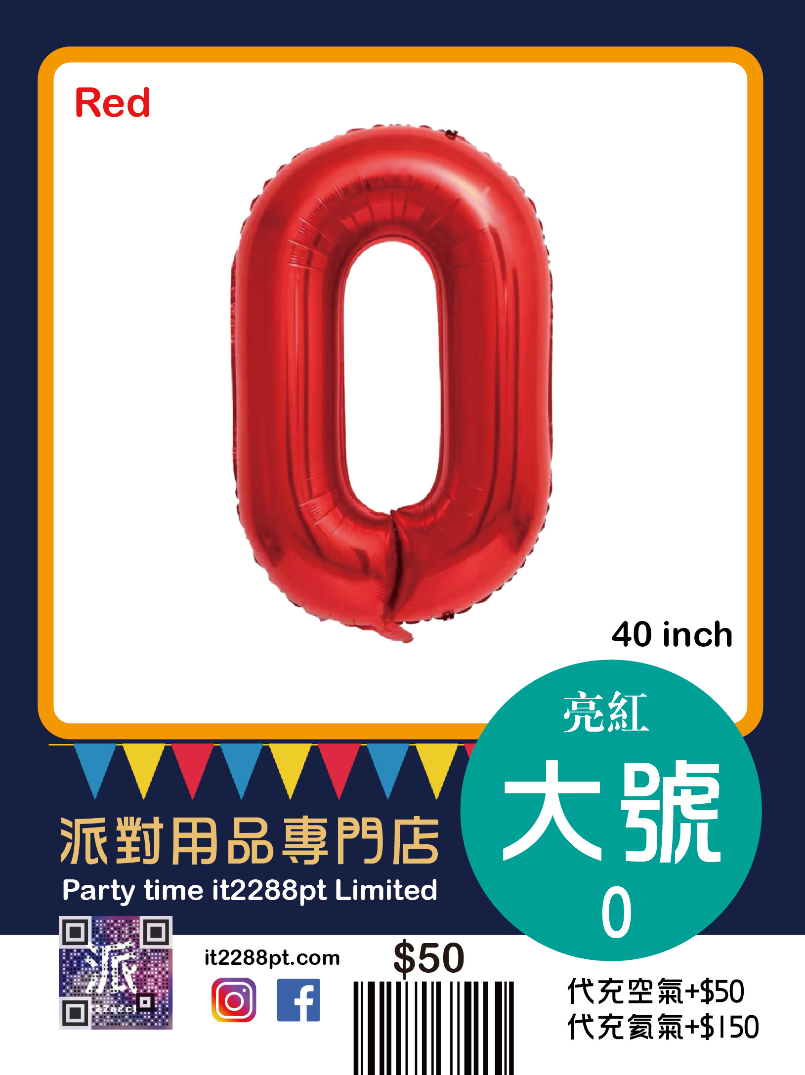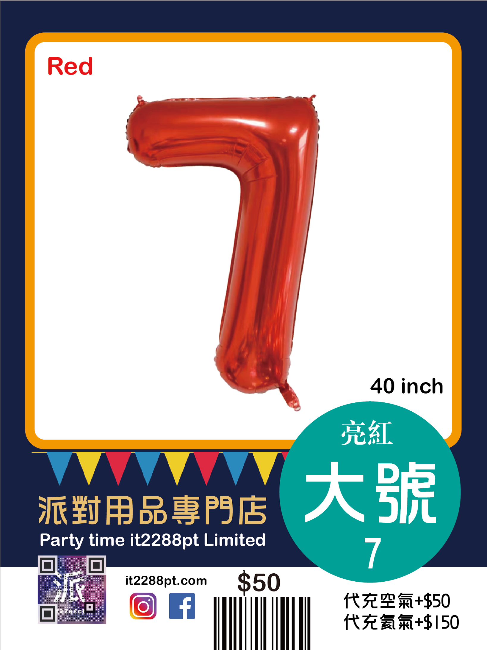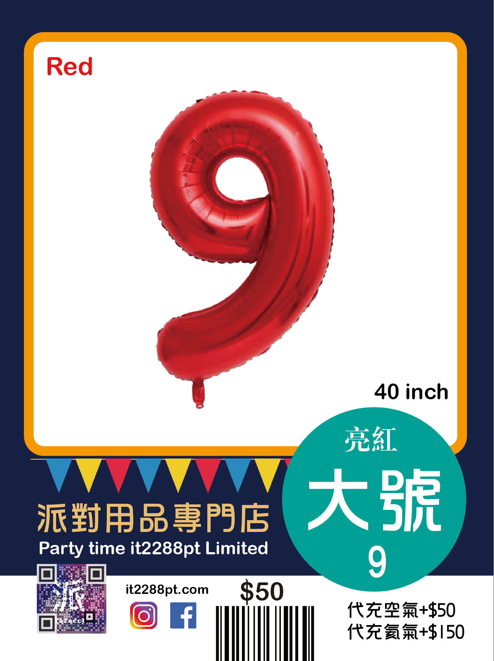 己充氦氣(代充氣請先whatsapp/signal預約,限觀塘店取或van仔送出)