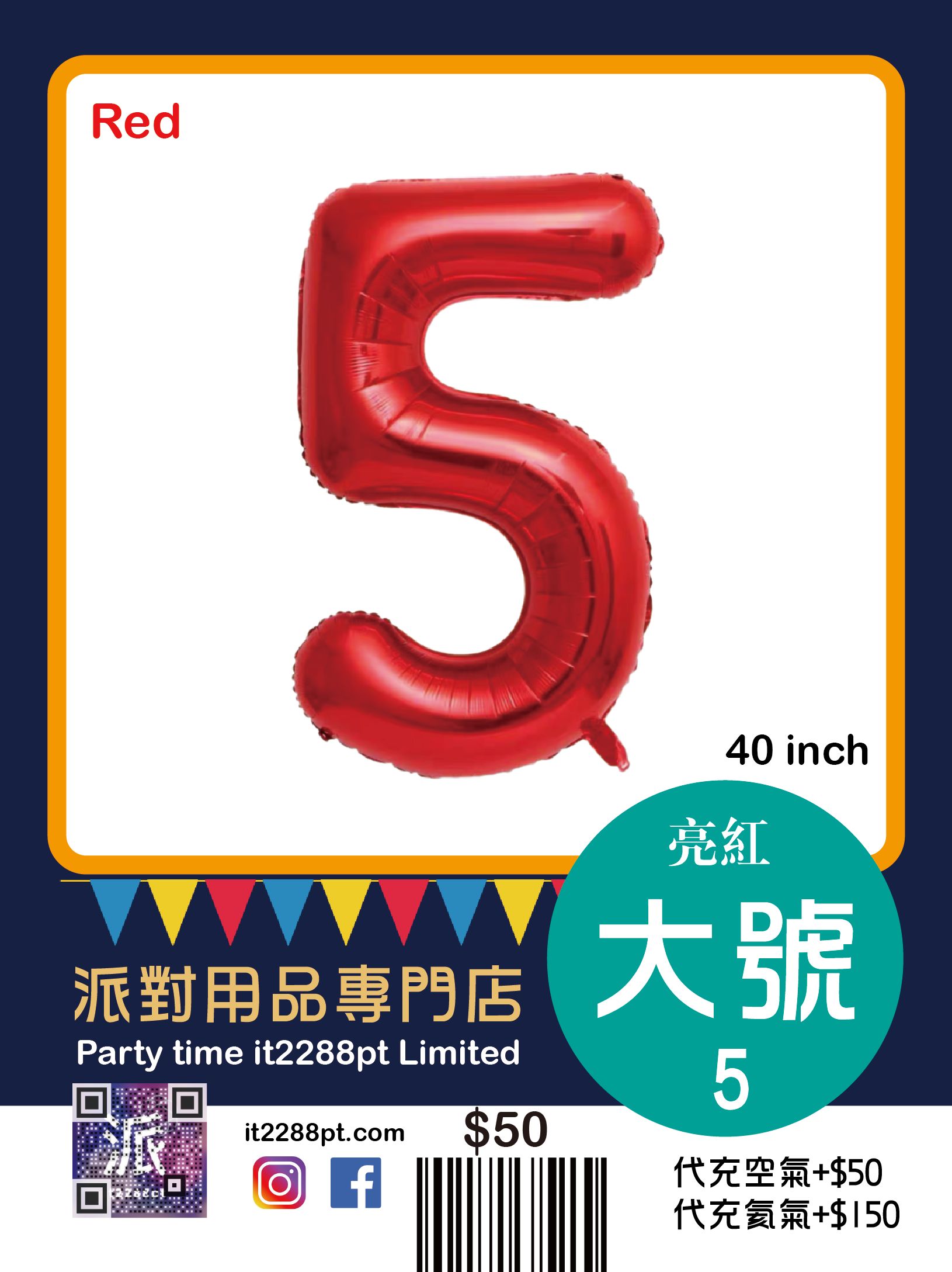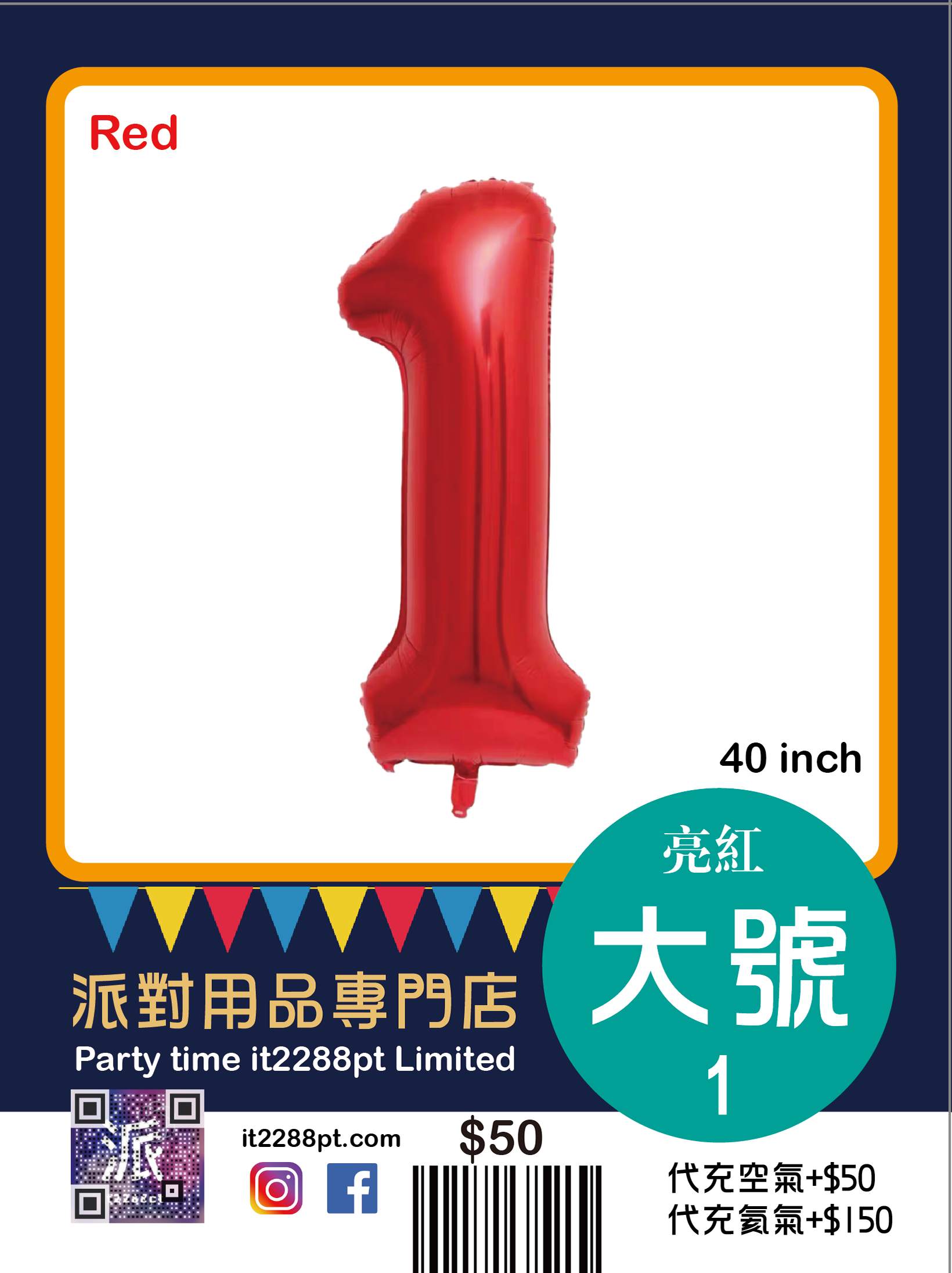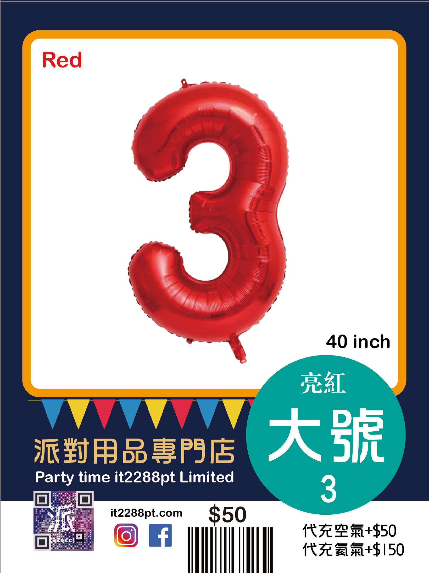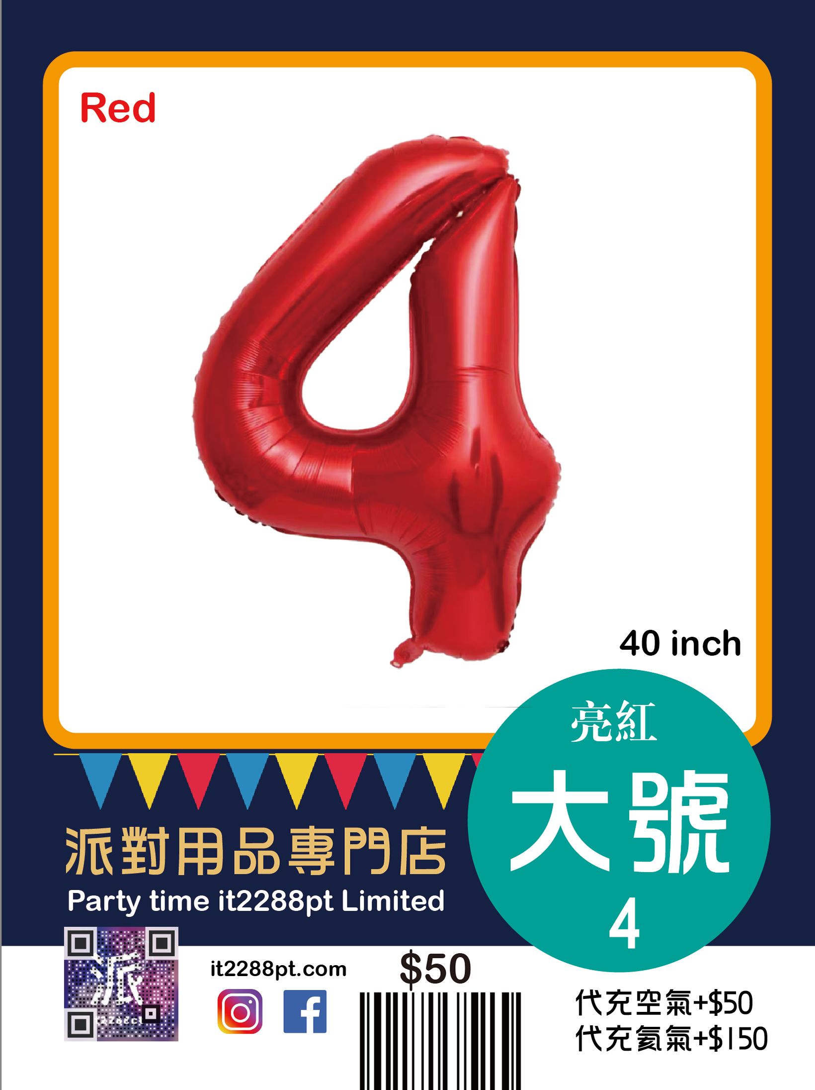 己充氦氣(代充氣請先whatsapp/signal預約,限觀塘店取或van仔送出)