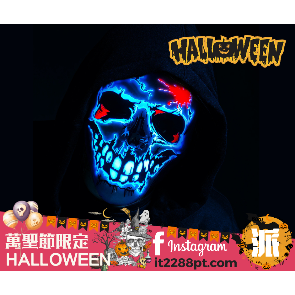 Halloween 萬聖節 發光面具 可長亮或閃燈